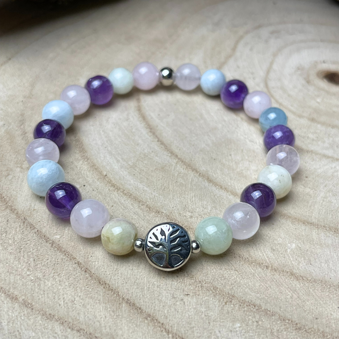 Composé de morganite, de quartz rose, et d’améthyste , il favorise l’apaisement des blessures affectives, ouvre à l’amour de soi, et invite à la paix intérieure.