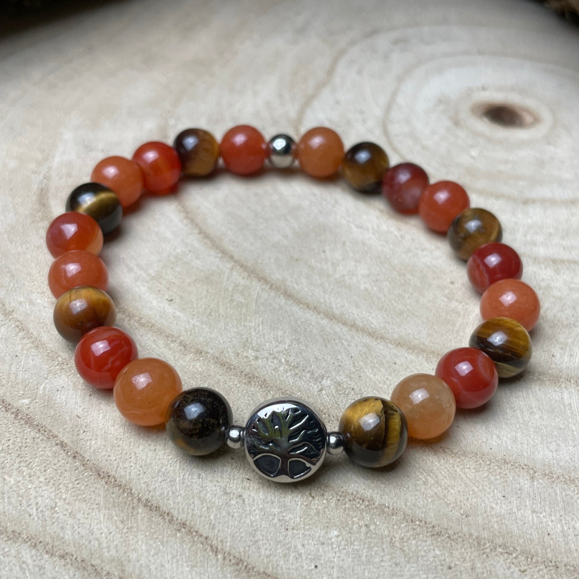 Composé de cornaline, d’œil de tigre, et d’aventurine orange , il combine énergie, courage et ancrage pour aider à concrétiser ses envies avec confiance.